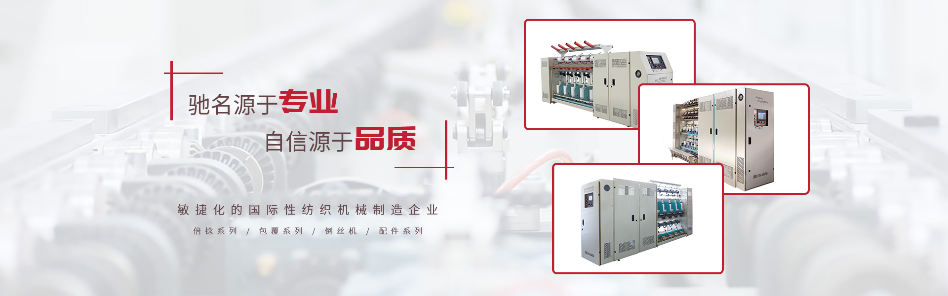 • 倍捻系列 包覆系列 倒絲機 加彈機系列 民用產(chǎn)品系列 配件系列